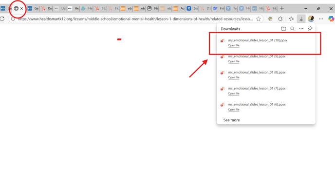 - The resource will download and should appear in a new tab in the upper-right hand corner. You will be prompted to save the file on your device.